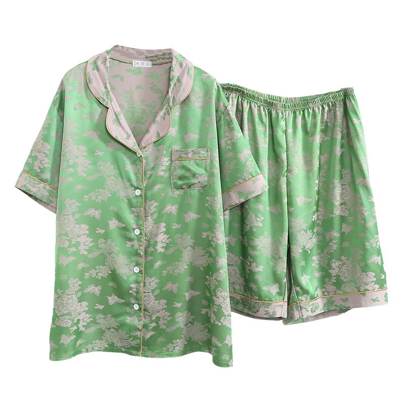 夏款丝绸冰丝睡衣女大码200斤胖mm宽松夏薄款提花短袖家居服套装