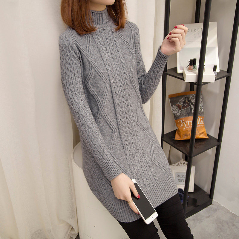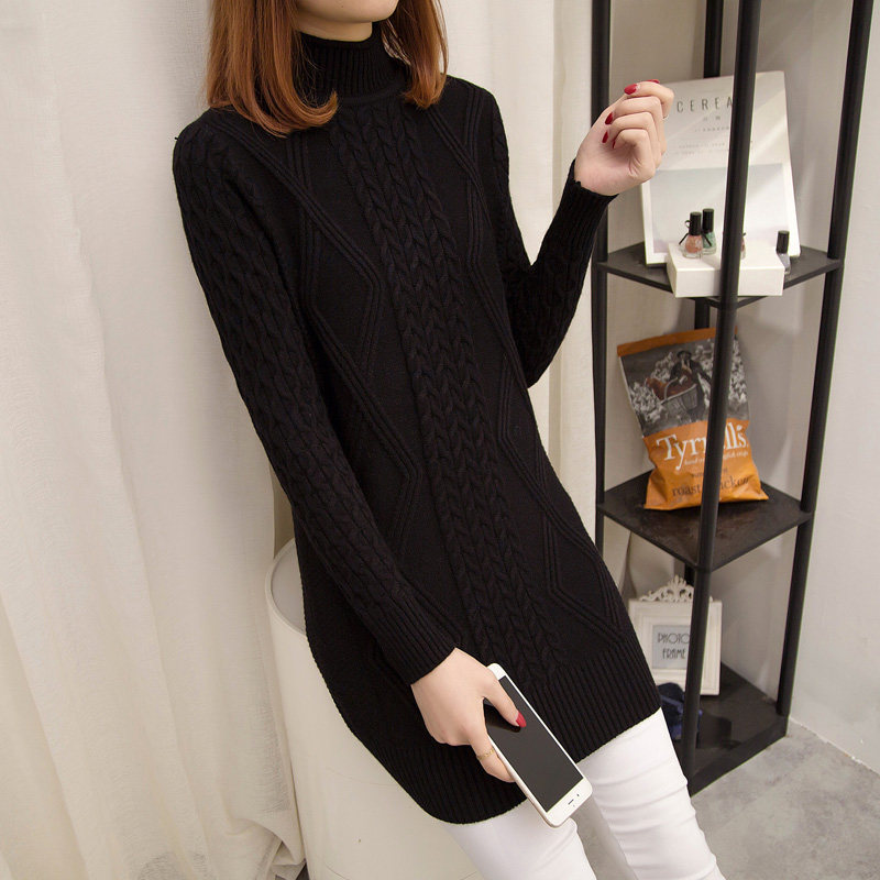 清仓!中长款半高领毛衣女秋冬新韩版女装厚纯色套头打底衫针织衫