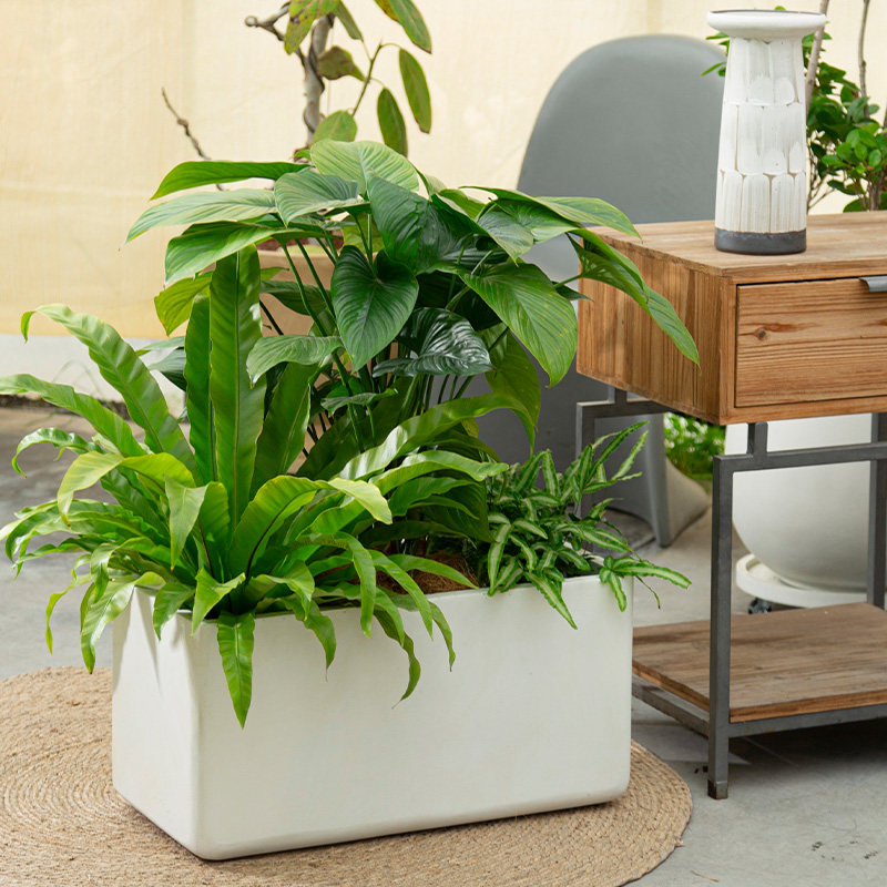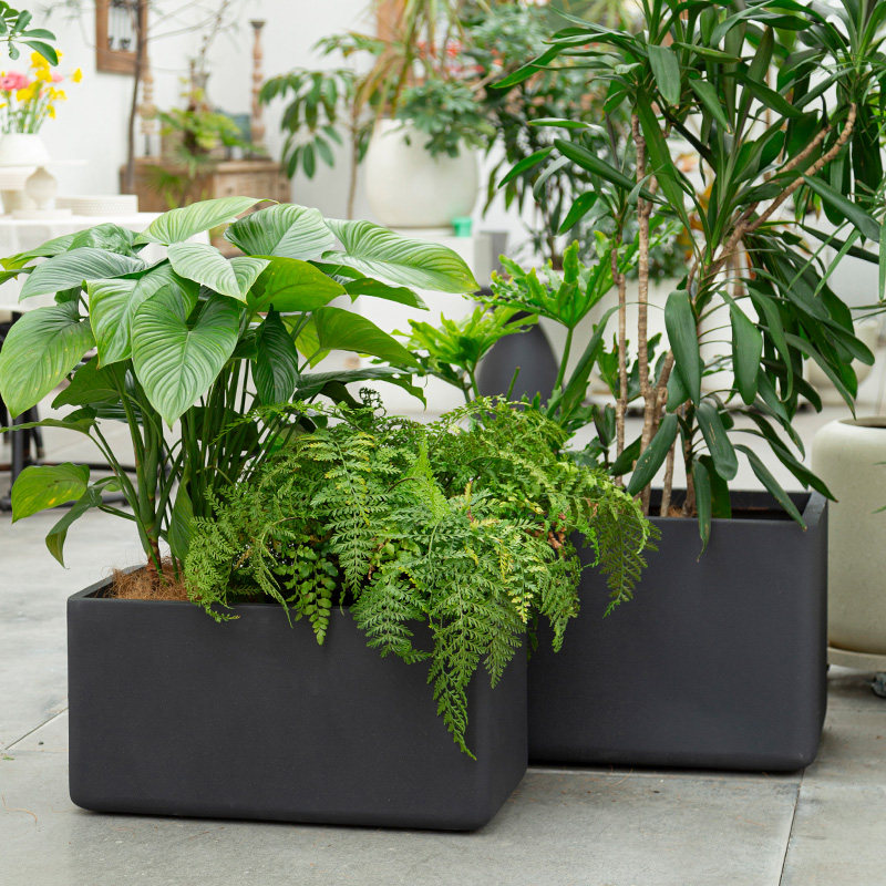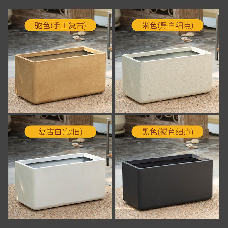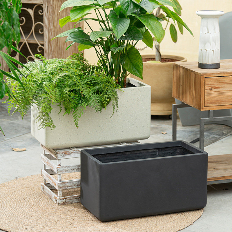 长方形镁泥花盆圆角家用阳台庭院商店水泥花盆白色黑色绿植盆栽大
