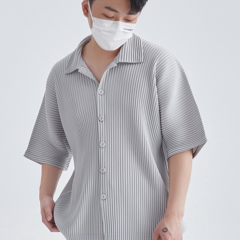 日系宅家褶皱男装短袖衬衫上衣外套夏季薄款宽松休闲青年JJ122