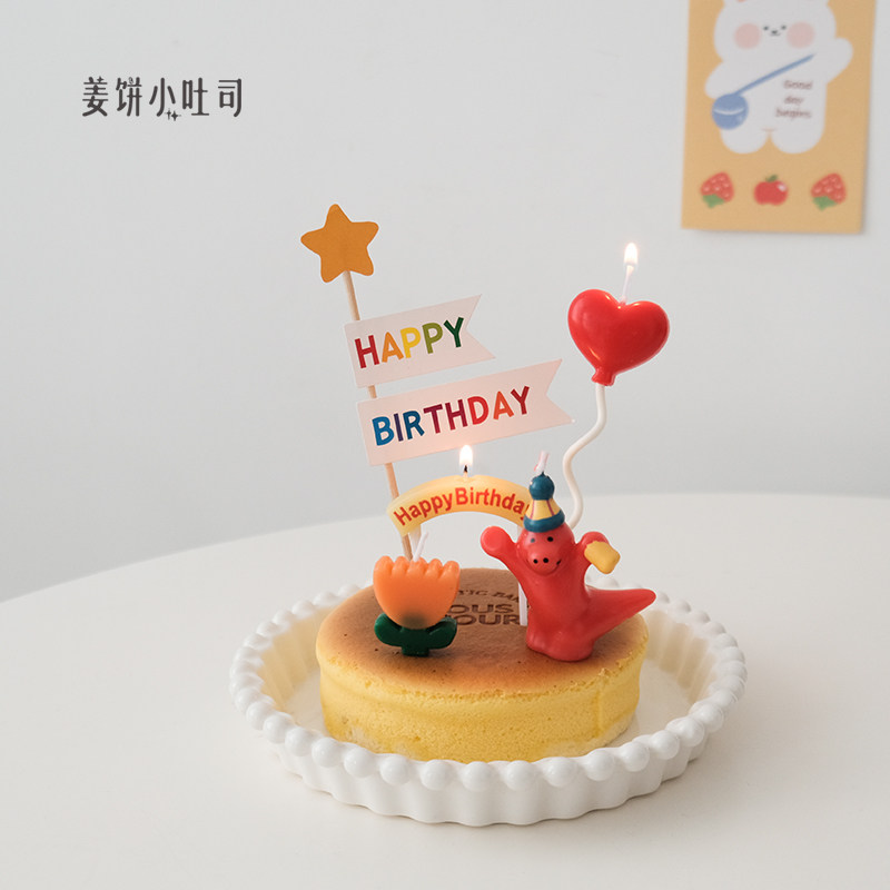 ins可爱卡通恐龙蜡烛蛋糕装饰插件儿童周岁生日派对拍照道具用品