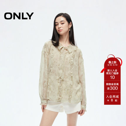 ONLY夏季通勤遮肚子时尚宽松V领系带雪纺衫上衣女|124351002