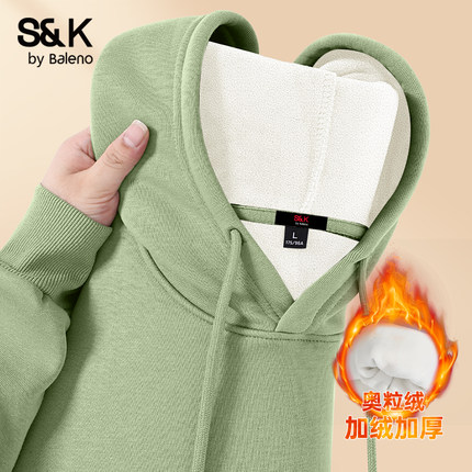 班尼路S&K系列连帽卫衣男重磅加绒加厚冬季男士奥粒绒套头上衣LF