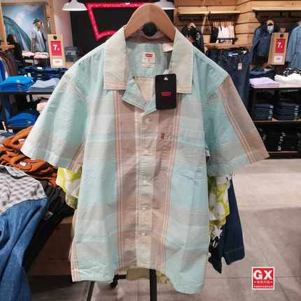 Levis李维斯正品2023新款 男士 休闲纯棉条纹短袖衬衫 72625-0076