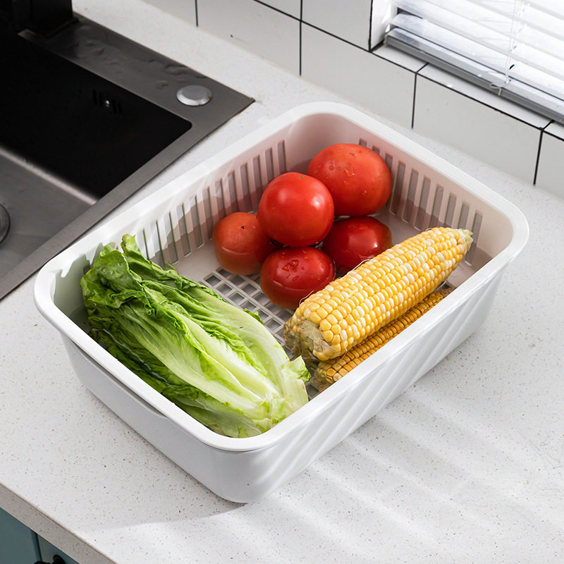 家用创意双层方形洗菜篮子沥水篮塑料水果盘多功能厨房淘米洗菜盆