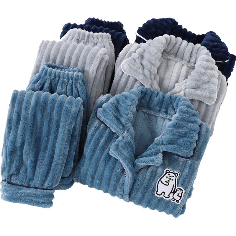 儿童秋冬季法兰绒睡衣男童女童春款加绒加厚宝宝珊瑚绒套装家居服