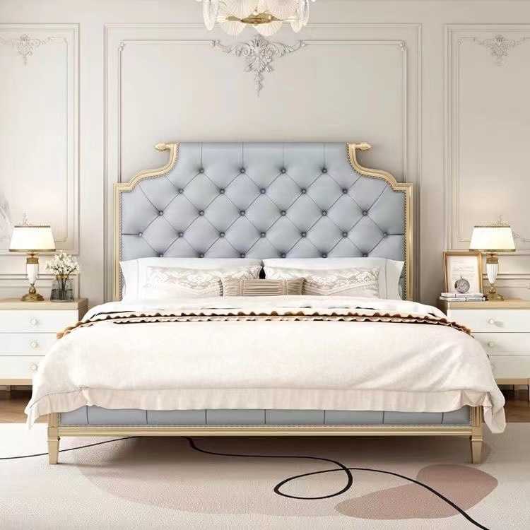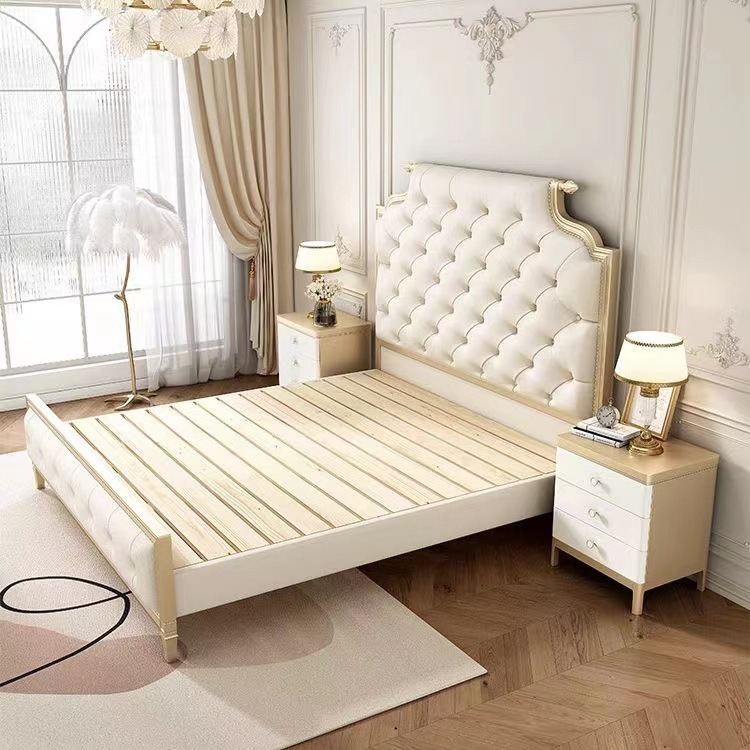 奶油风法式轻奢1.5实木床主卧室双人大床1.8米现代简约美式牛角床