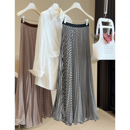 2026新款春夏季显瘦雪纺气质条纹百褶裙女显瘦中长款高腰半身裙女