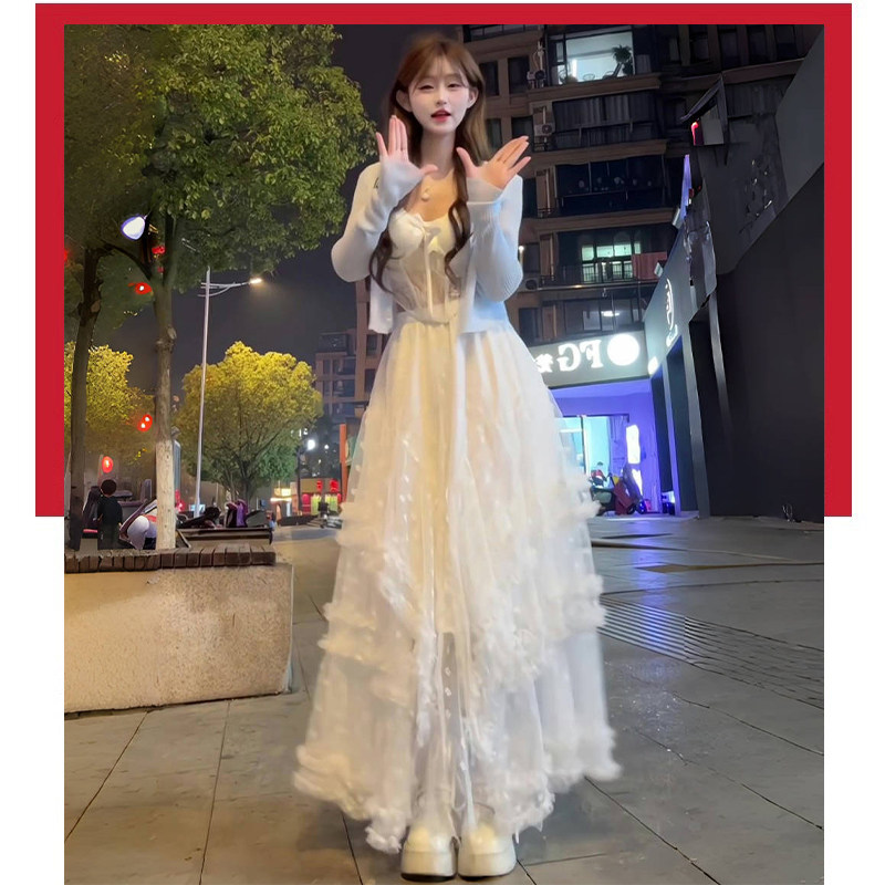 白色网纱蕾丝半身裙女春季2025新款松紧高腰显瘦垂坠感蓬蓬蛋糕裙