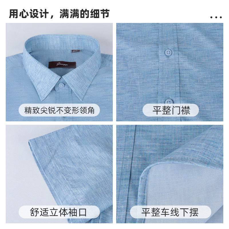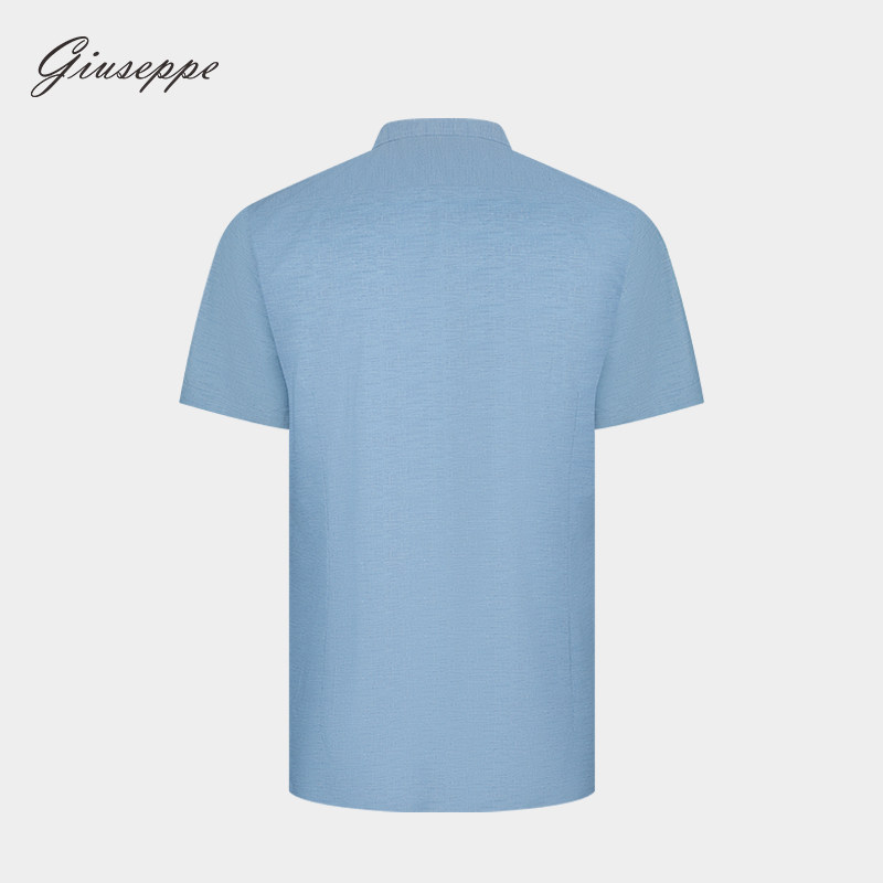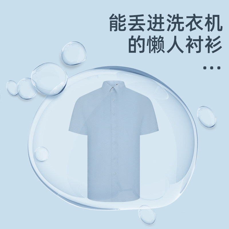 乔治白夏季薄款男士短袖衬衫商务尖领浅蓝衬衣休闲微弹修身上衣