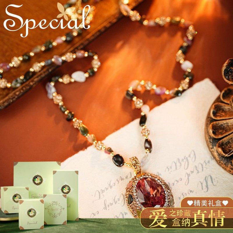 SPECIAL欧美轻奢时尚长款毛衣链项链女碧玺镶嵌饰品2026新款礼物