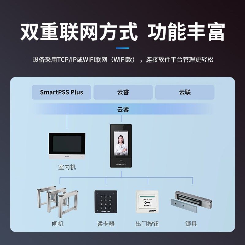 大华4.3寸人脸识别门q禁系统一体机联网考勤指纹刷卡可视对讲31D