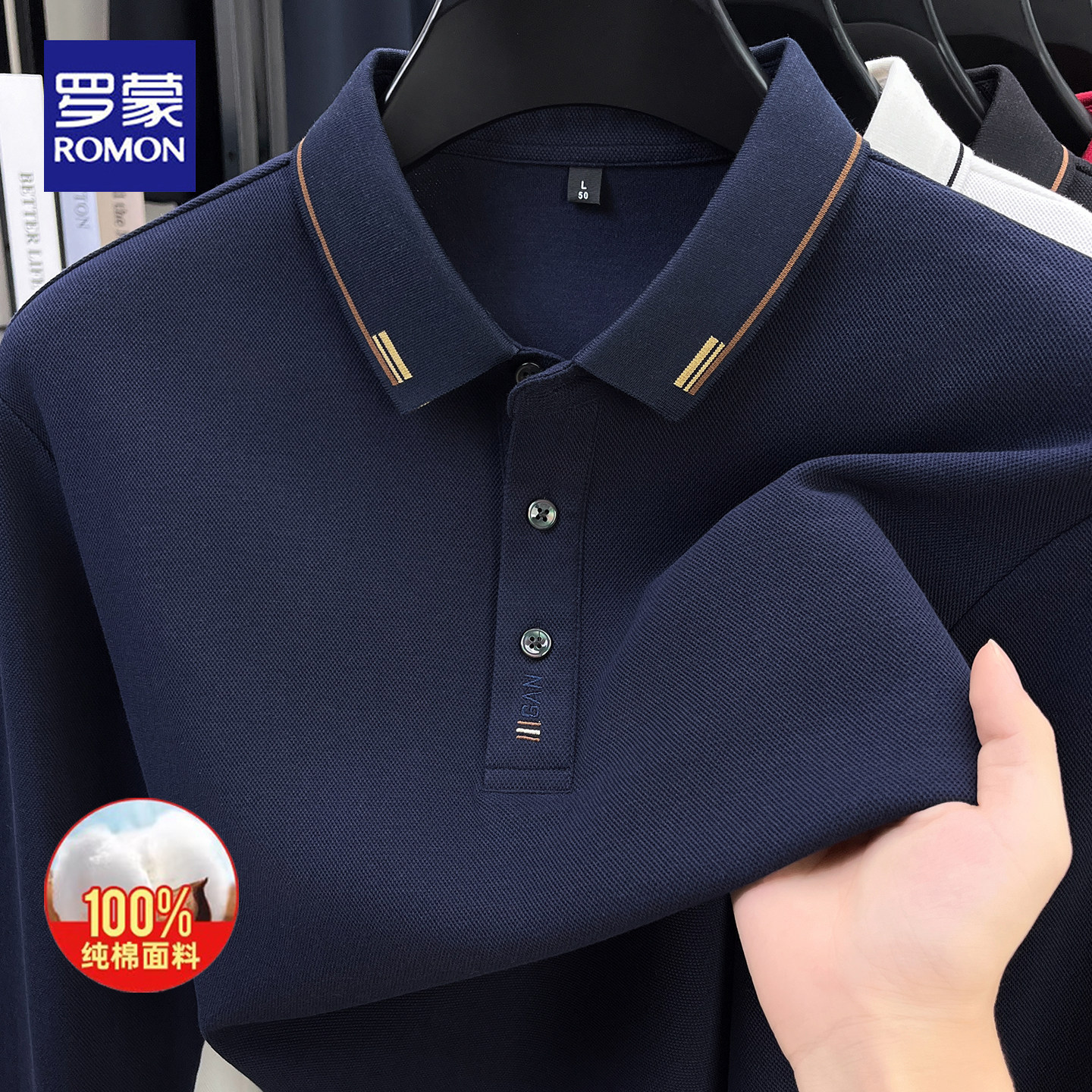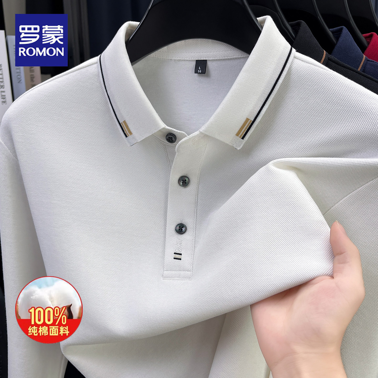 罗蒙2025新款男士长袖T恤春秋款商务休闲翻领纯棉polo衫男装上衣