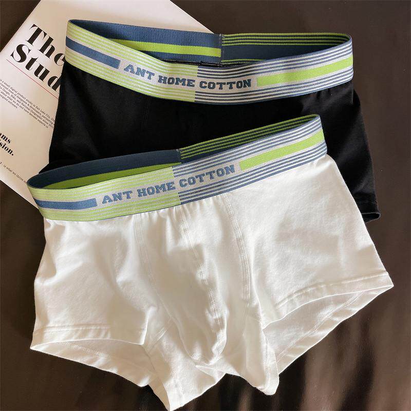 四角裤吸汗透气平角裤潮流青年中腰男士内裤纯棉夏季白色运动短裤