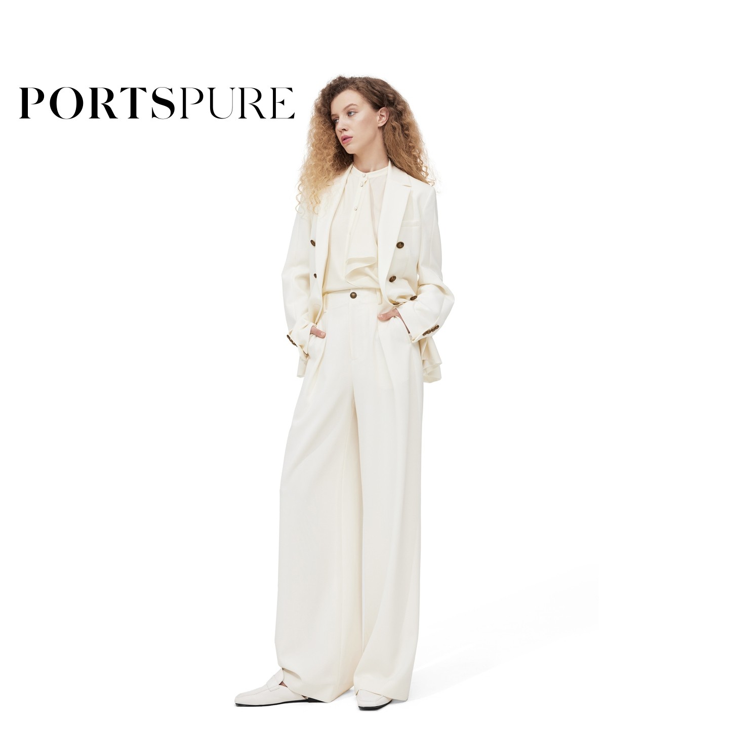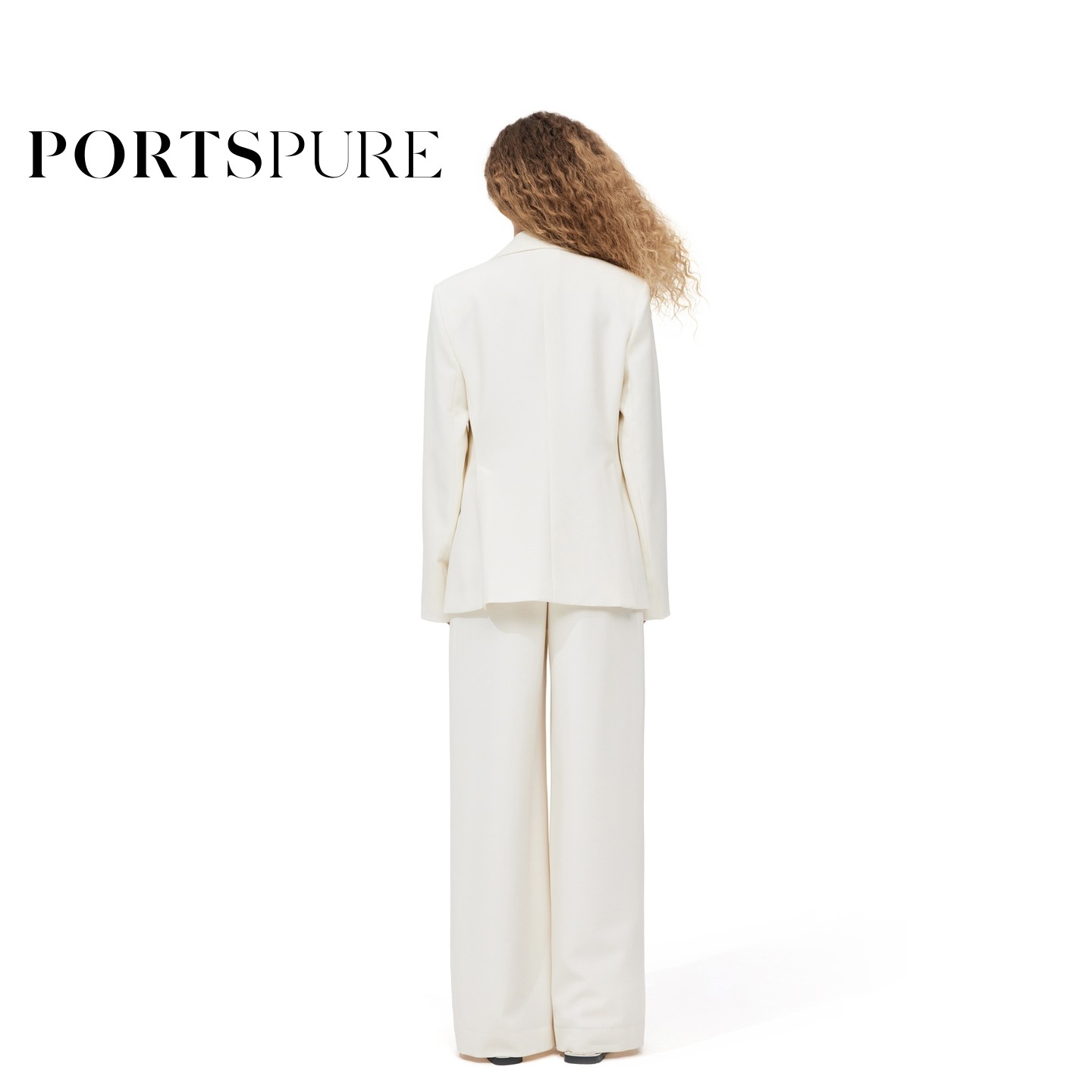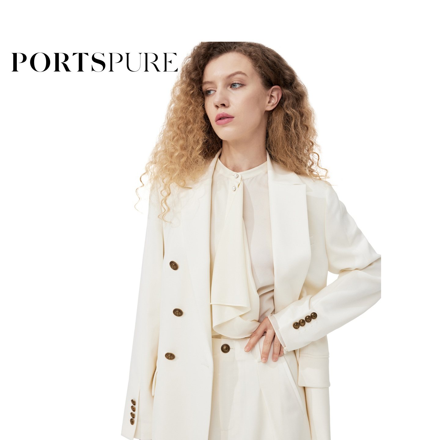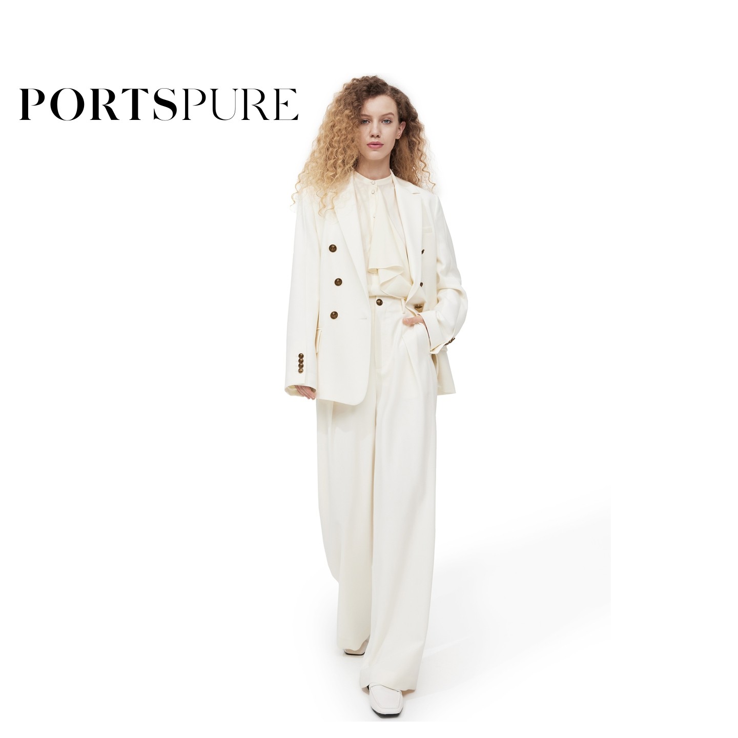 宝姿PORTSPURE女装春秋绵羊毛经典休闲金属双排扣高级感西装外套