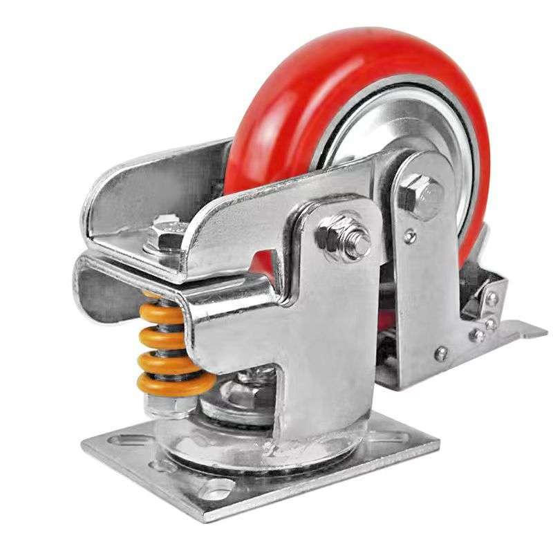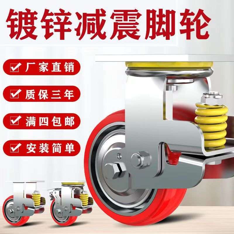 6寸8寸韩式减震刹车脚轮 5寸PU韩式弹簧减震避震防缠绕万向脚轮