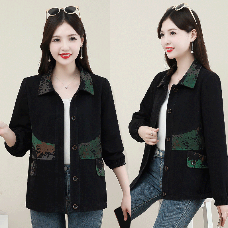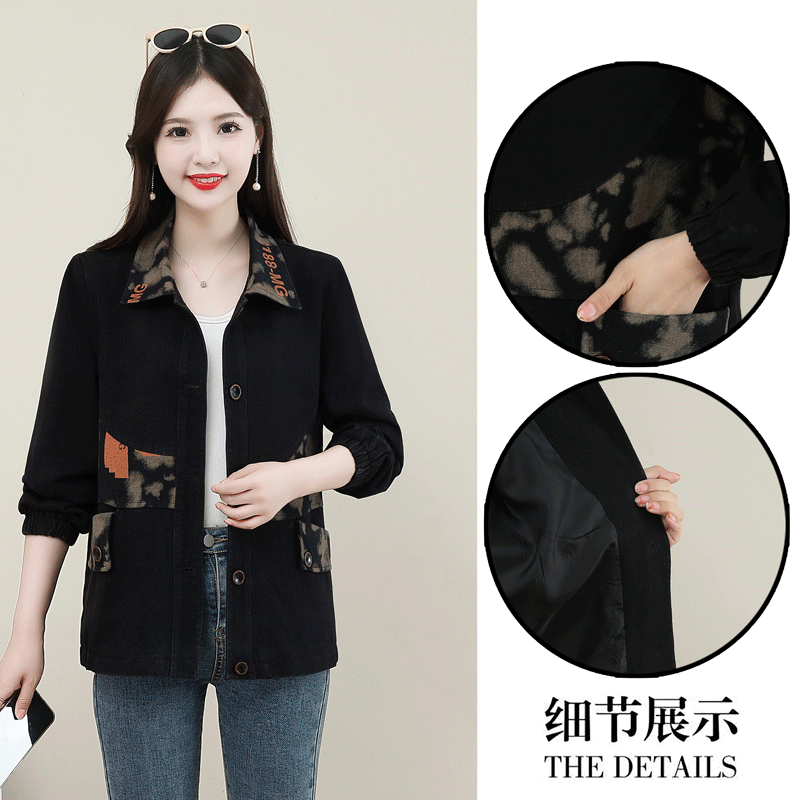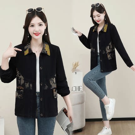 中年妈妈时尚翻领拼接口袋牛仔外套2024秋季爆款休闲百搭减龄上衣