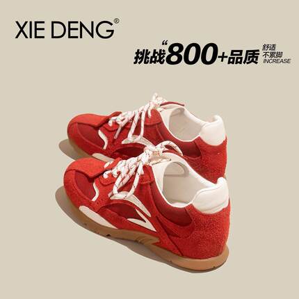 「鞋登」内增高5CM红色阿甘鞋2025年新款德训鞋女百搭休闲 运动鞋