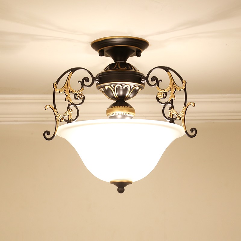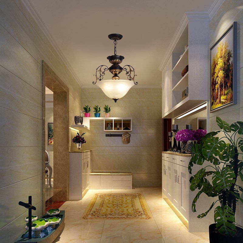 美式简约阳台过道半吸顶灯led铁艺玄关入户门厅欧式复古走廊吊灯
