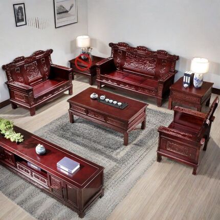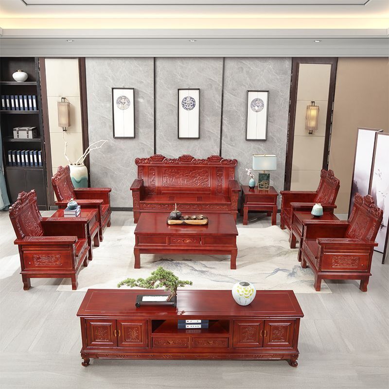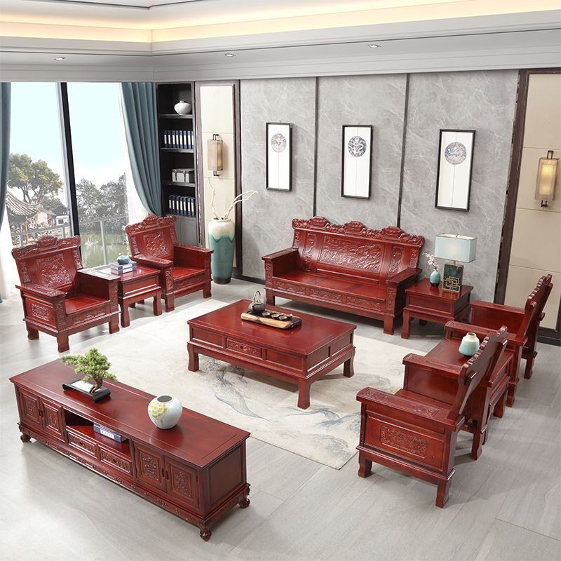 菠萝格实木沙发组合茶几古典中式仿古雕花客厅经济型农村家用冬夏
