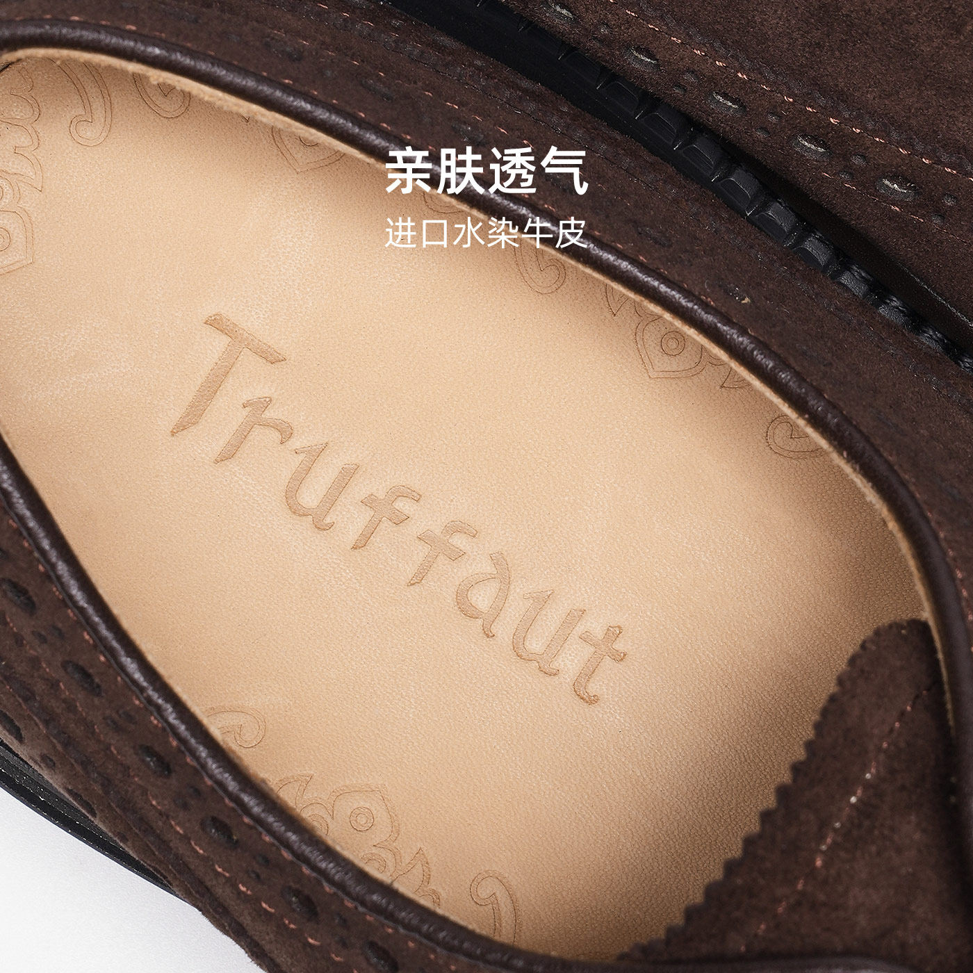 Truffaut手工布洛克雕花德比鞋男休闲皮鞋反绒皮真皮英伦商务男鞋