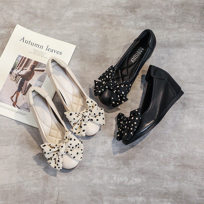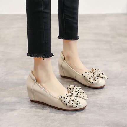 坡跟蝴蝶结单鞋内增高女鞋豆豆鞋