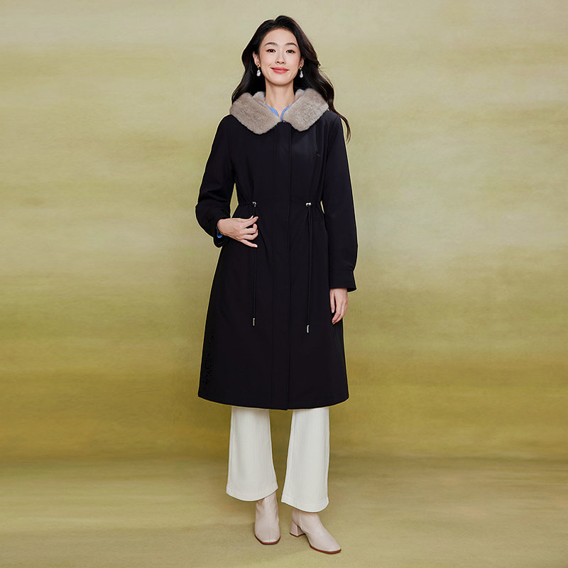 黛玛诗冬新款时尚百搭水貂毛皮内胆冬季保暖尼克服大衣外套女