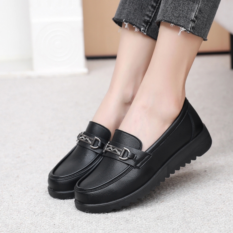 女鞋2025新款春秋妈妈鞋皮鞋圆头一脚蹬软底防滑中老年女单鞋