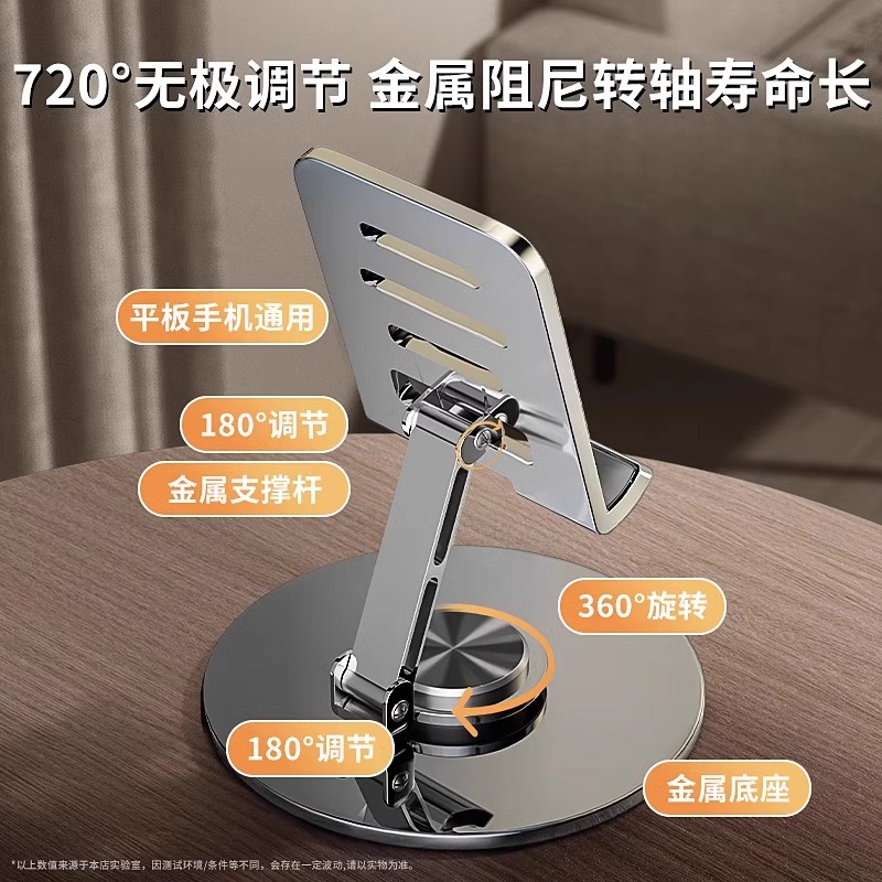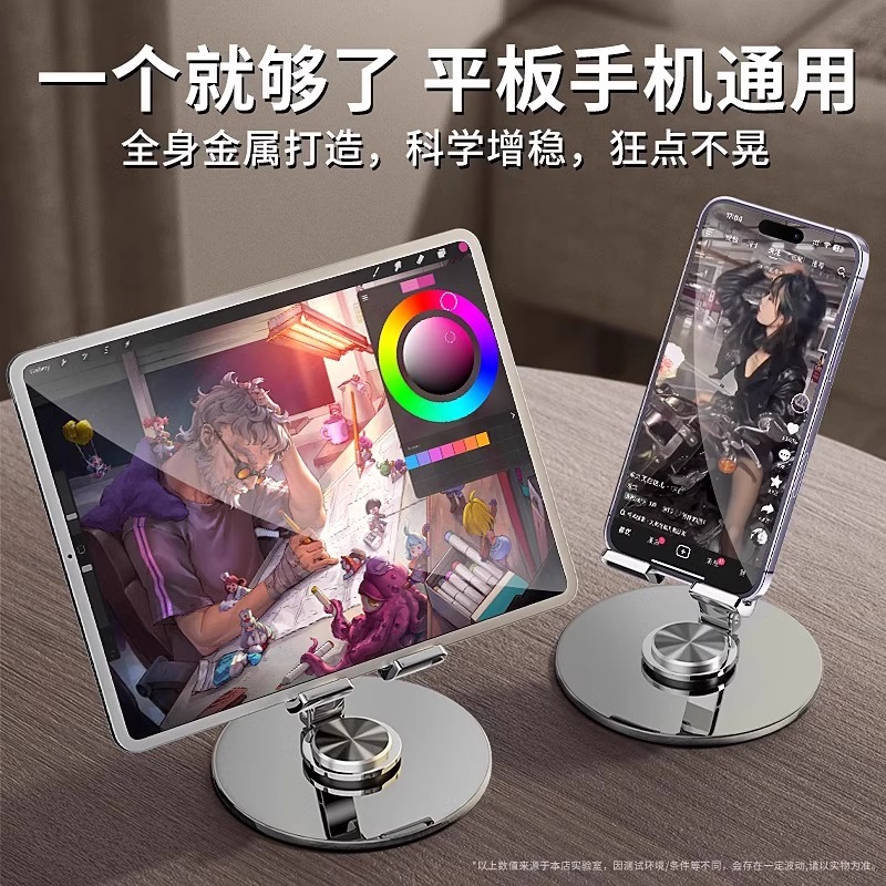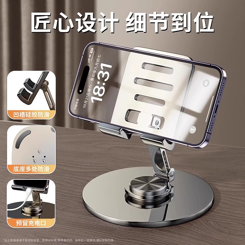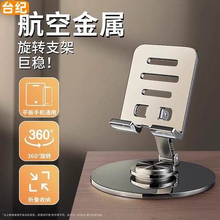 台纪全金属手机支架桌面懒人平板支撑架可旋转折叠手机架直播ipad支撑架子合金金属720旋转支架便携散热携带