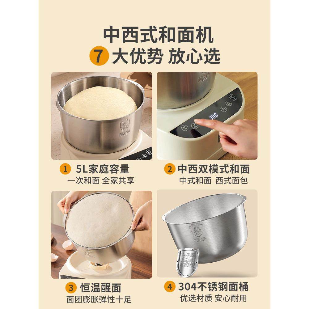 利仁和面机小型家用揉面机全自动厨师机和面发酵一体搅面机新款型