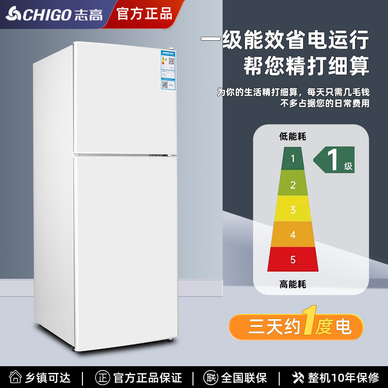 【阿里自营】志高双门小冰箱家用一级节能省电租房宿舍用双门冰箱