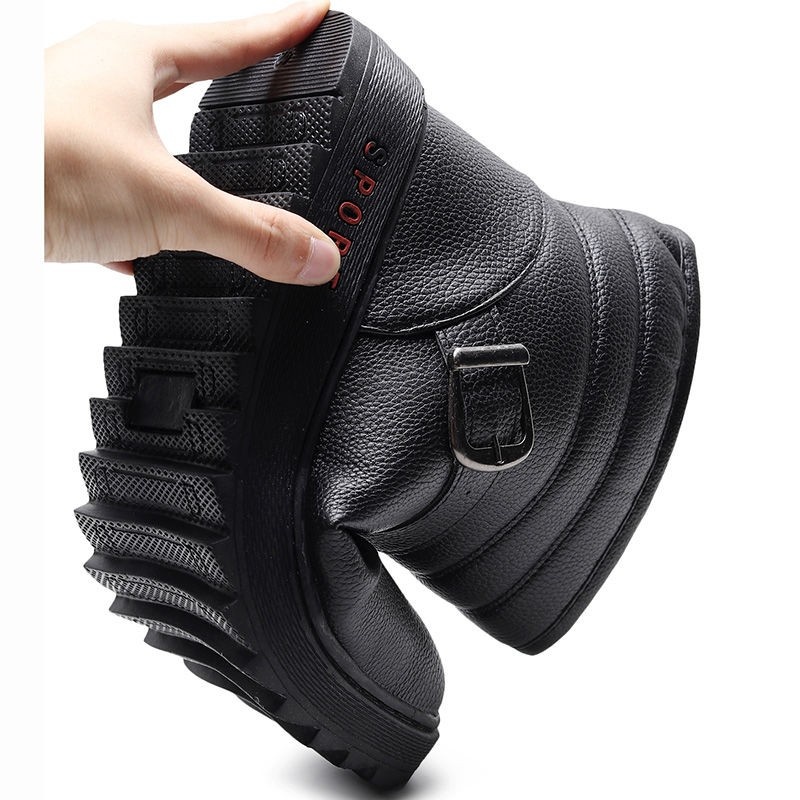 冬季加绒男雪地靴老人休闲短靴保暖加厚防水防滑棉鞋套筒中年棉靴