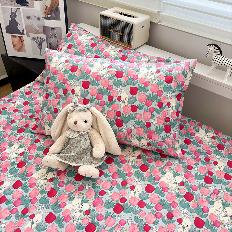 甜蜜小兔田园风全棉床单单件1.8m小碎花纯棉床笠被套可配三四件套