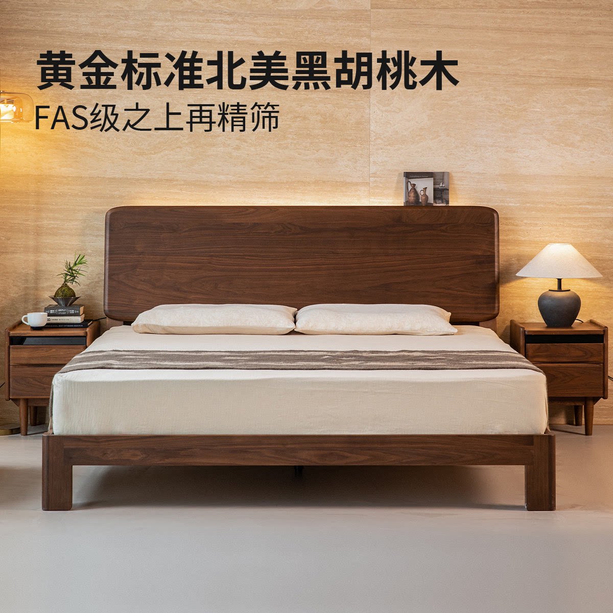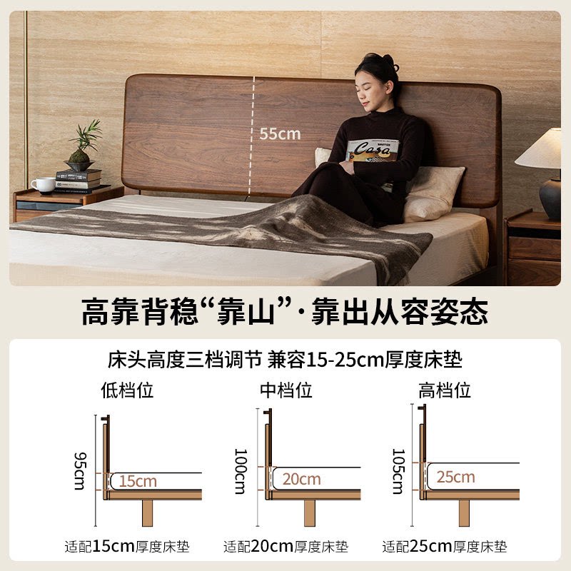 出乎生活家具墩墩全实木床北美黑胡桃木双人床北欧风卧室1米8大床