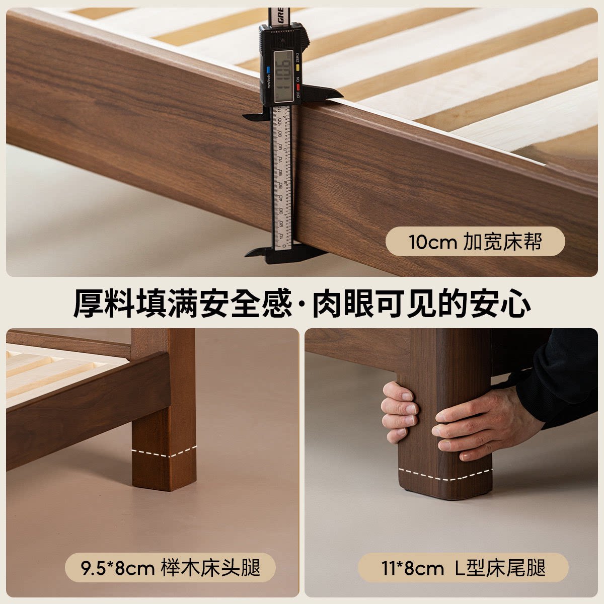 出乎生活墩墩实木床北美黑胡桃木