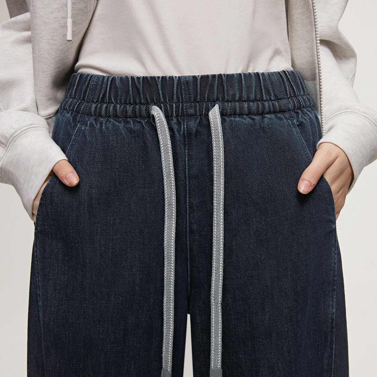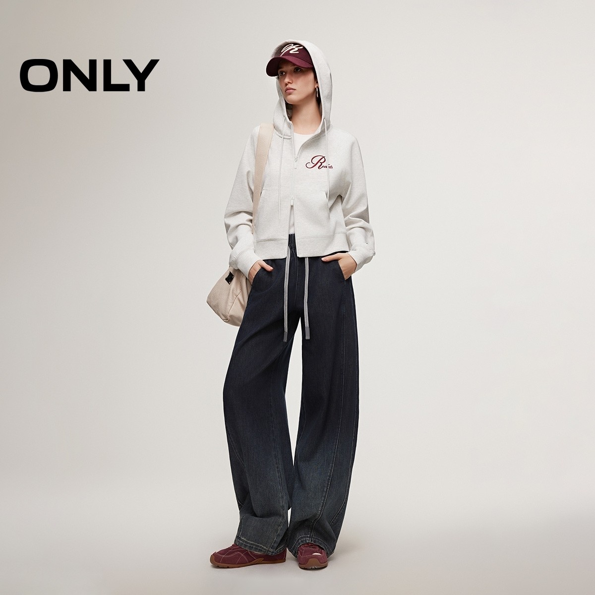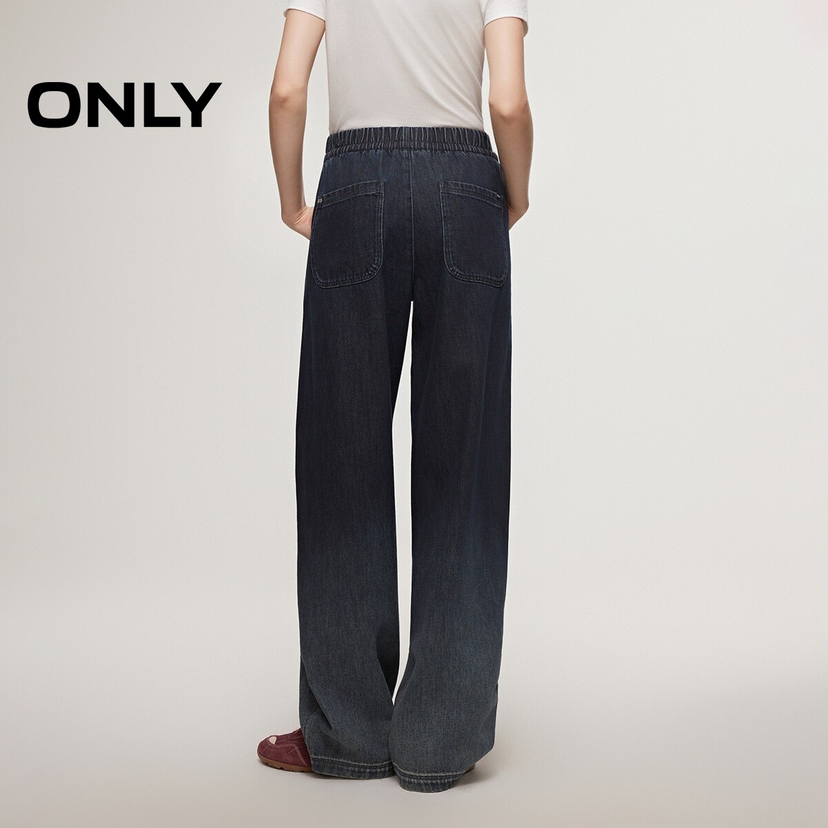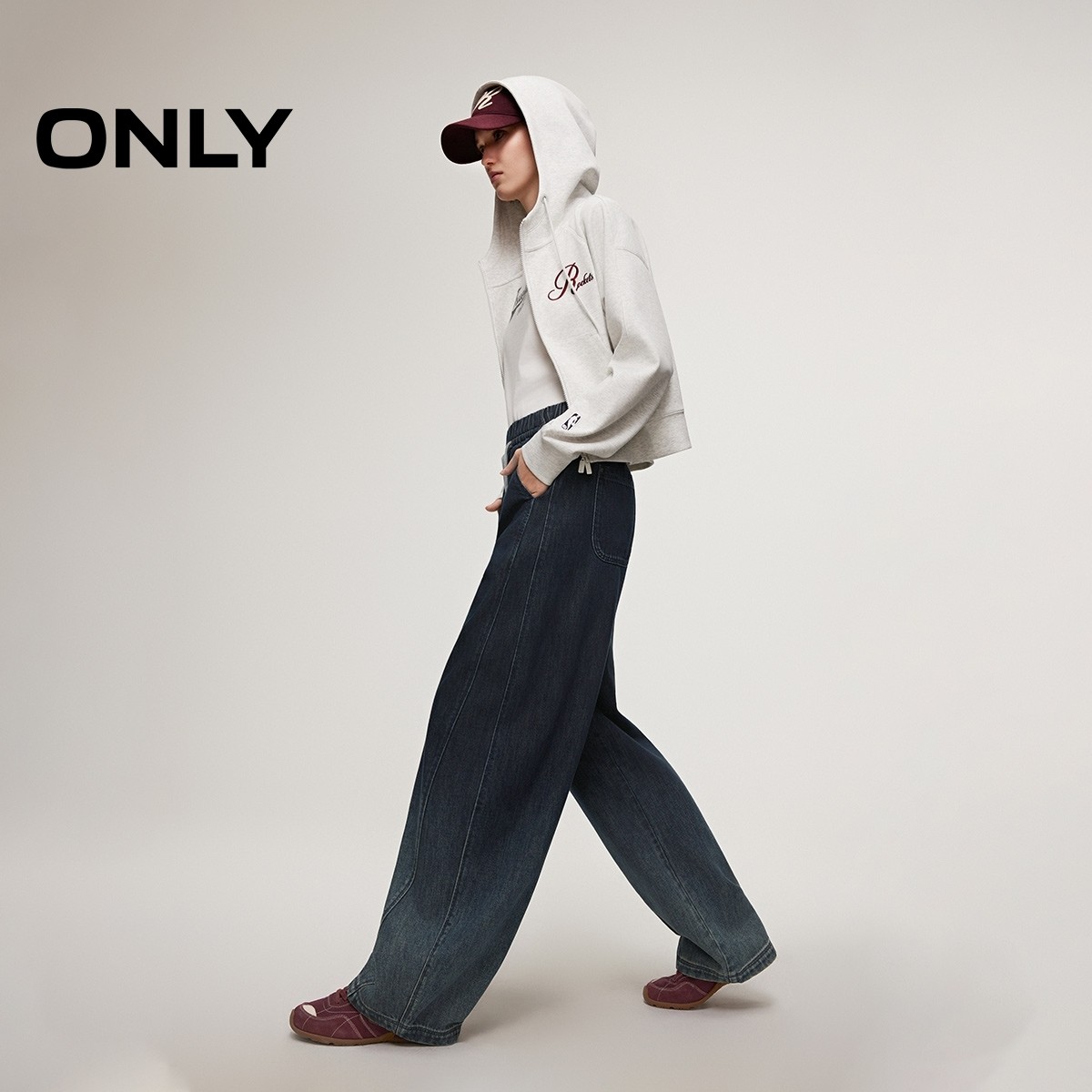ONLY2025冬季新款舒适弹力抽绳腰头渐变立裁香蕉裤长裤牛仔裤女