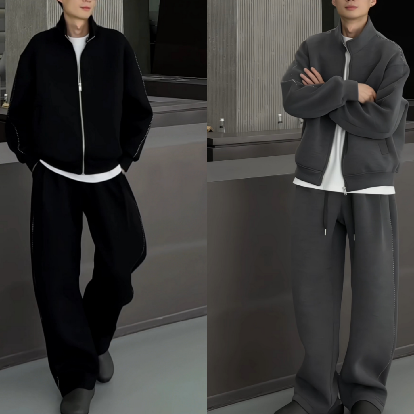 韩版潮牌早秋时尚休闲运动套装男拉链卫衣长裤两件套帅气百搭套装