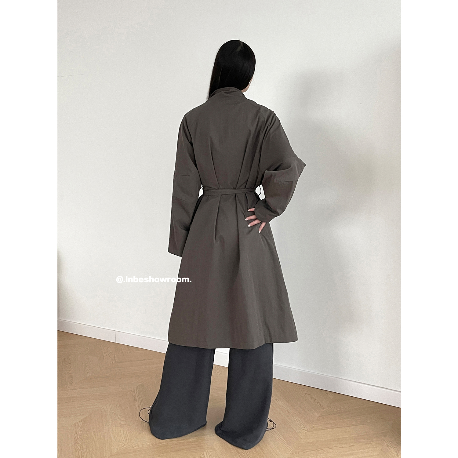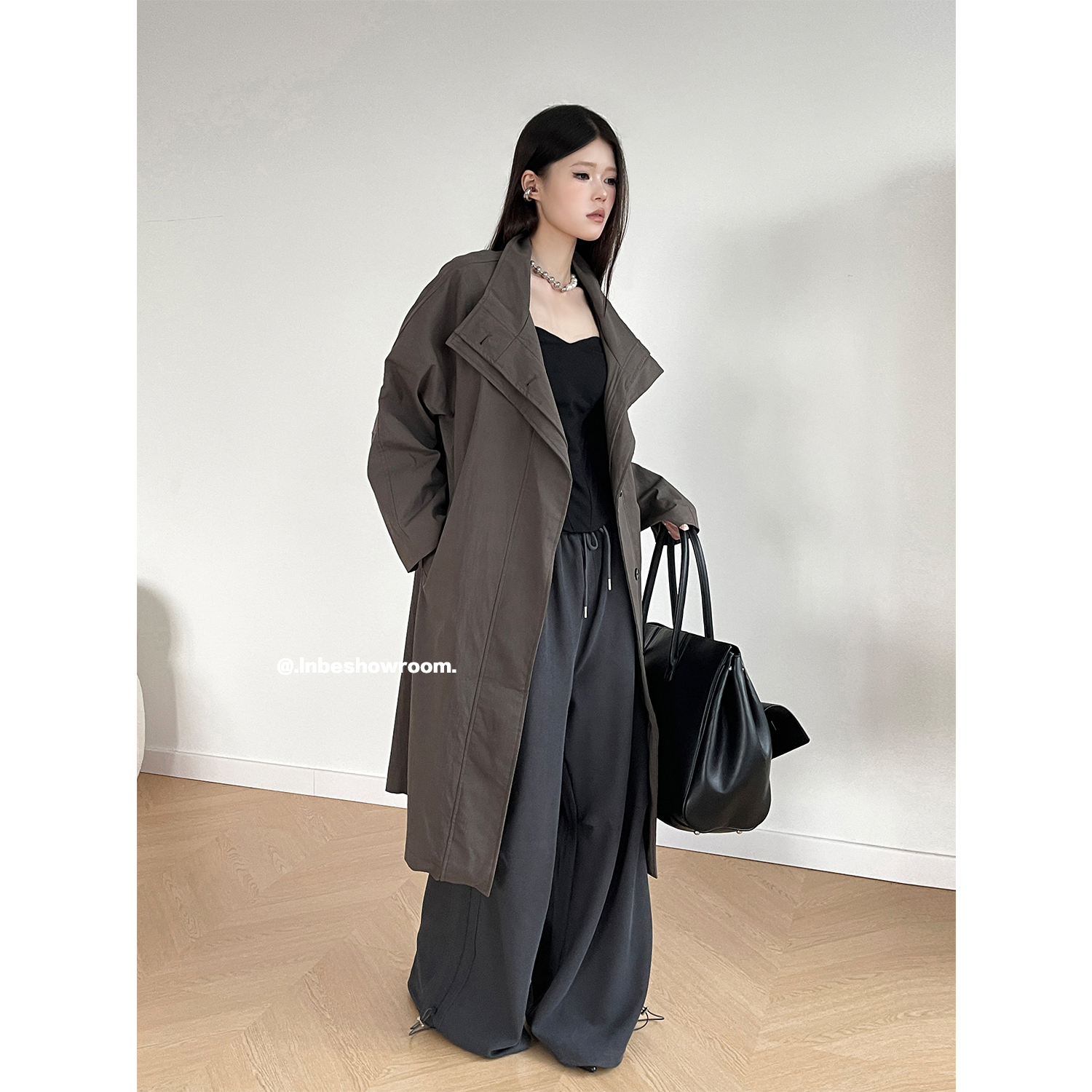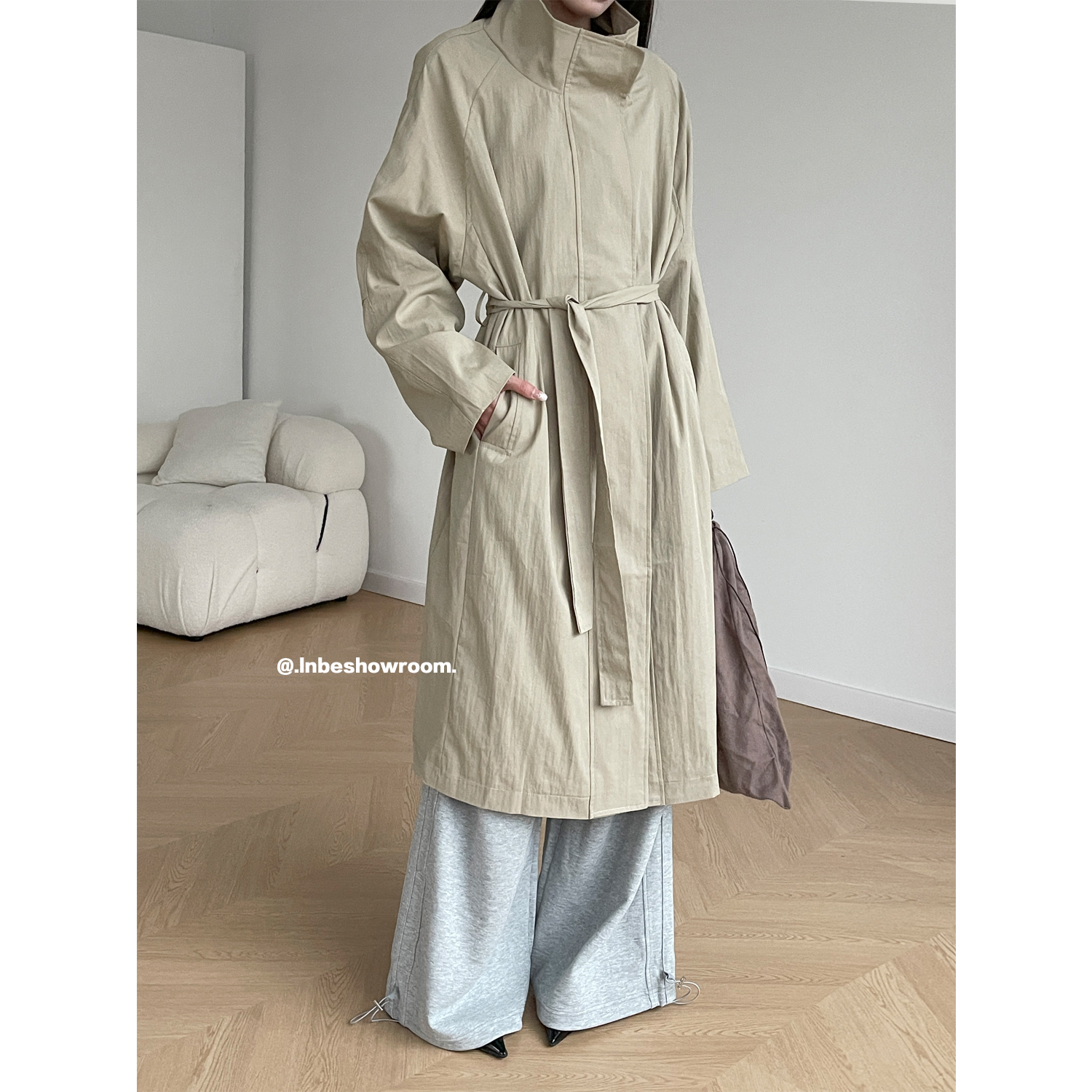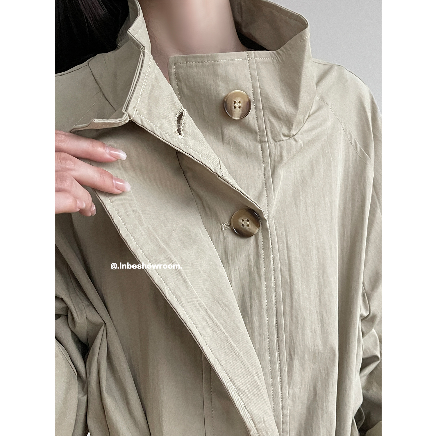 Inbeshowroom复古高级感中长款立领风衣外套女收腰宽松休闲大衣