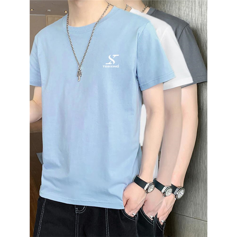 以纯YISHION短袖t恤男夏季纯棉印花半袖上衣潮流青少年宽松体恤夏