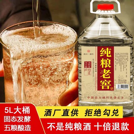 四川绵竹纯粮食白酒52度浓香型五粮酒散酒10斤桶装高粱酒泡酒专用