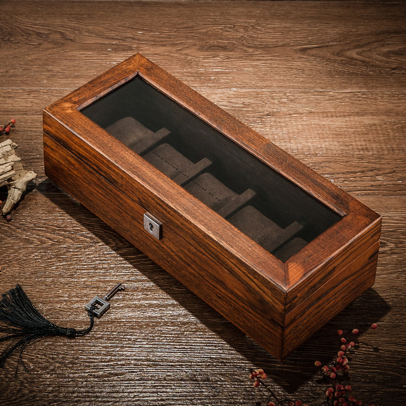 夭桃纯实木五位展示带锁手表盒