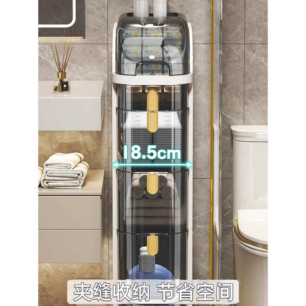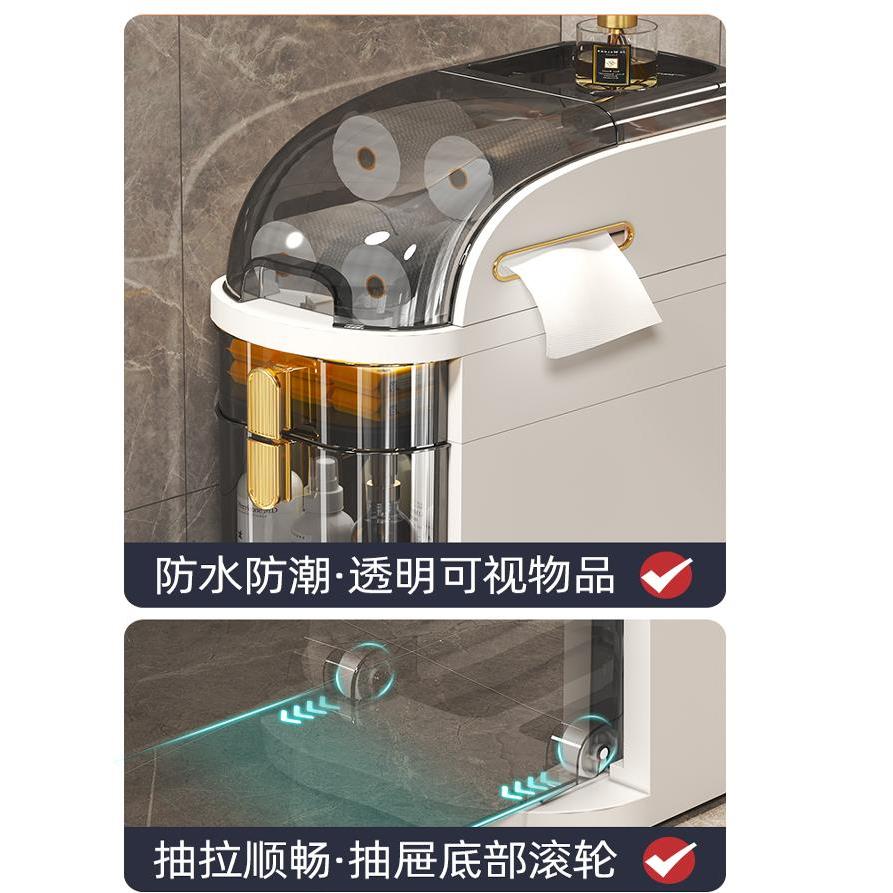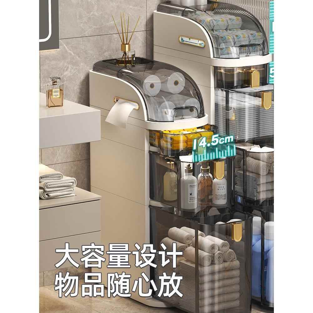 日式精工卫生间夹缝收纳柜抽屉式带滚轮厕所窄缝轻奢高颜值储物柜