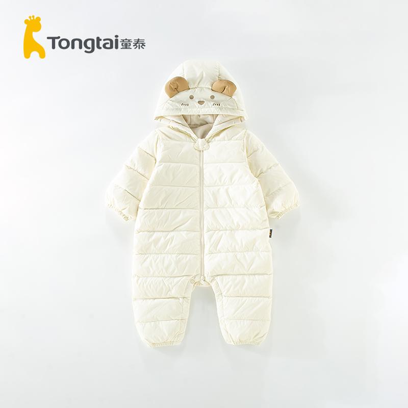 童泰2024冬装婴儿羽绒服宝宝连体衣新生儿外出抱衣儿童白鸭绒哈衣