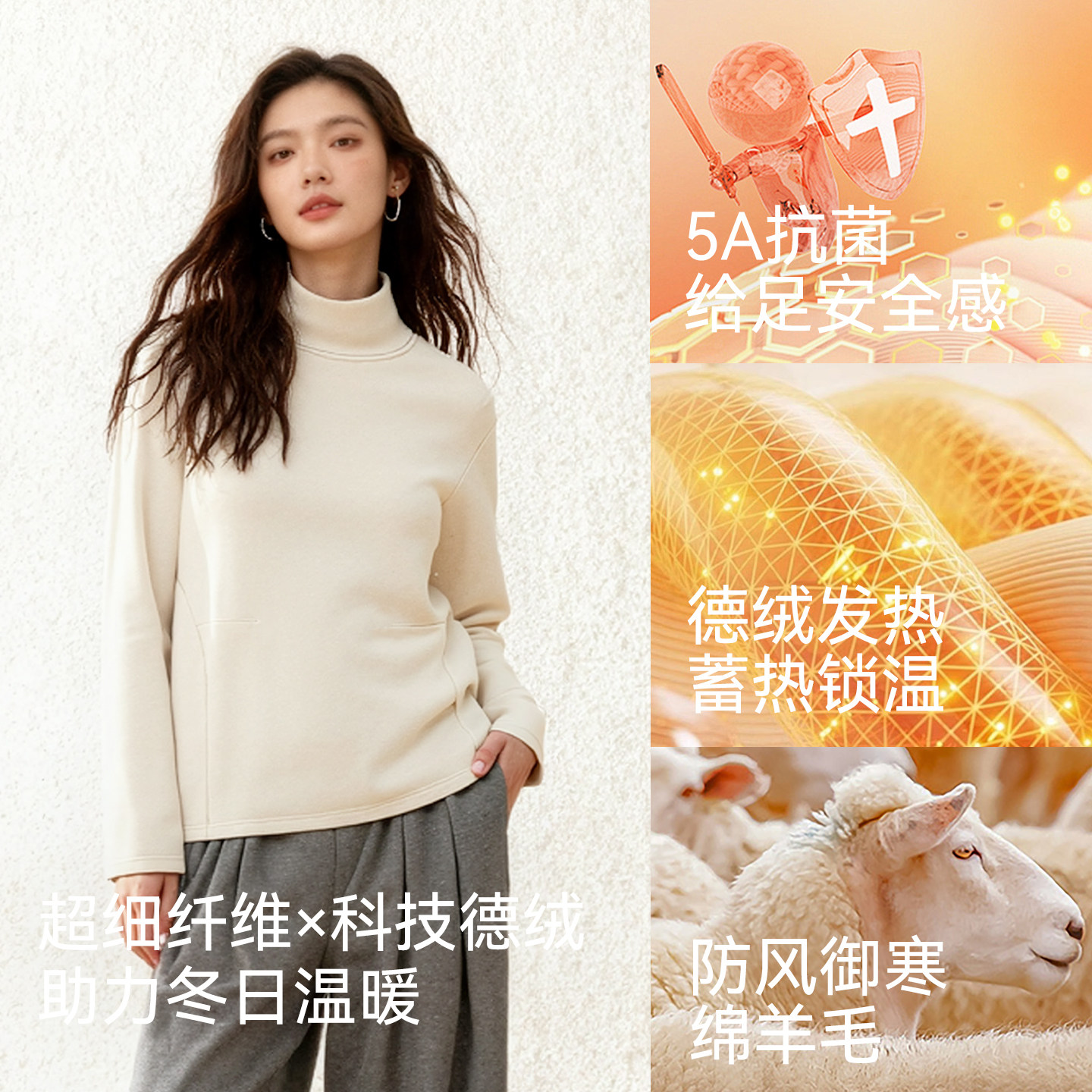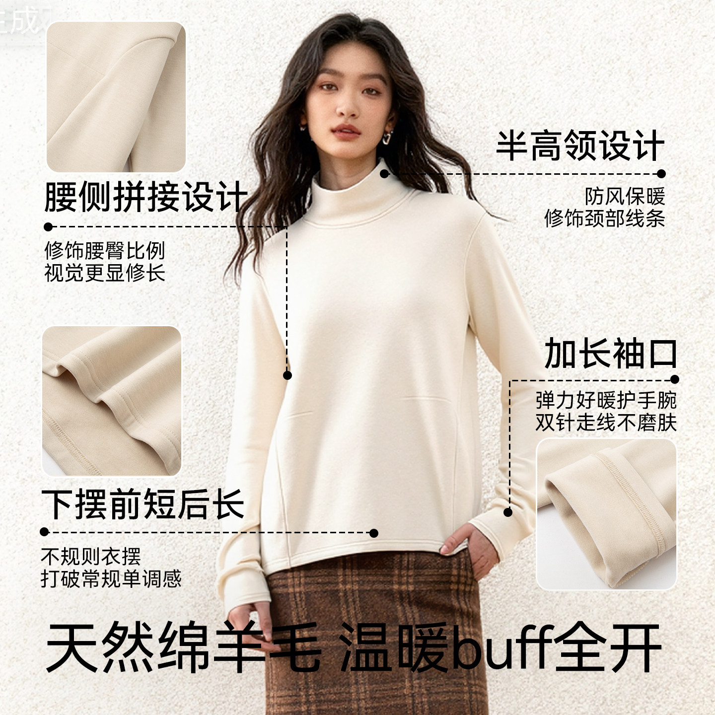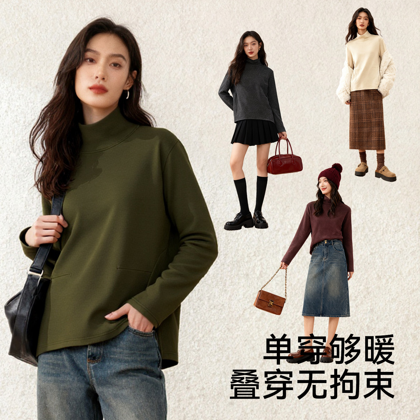 半高领卫衣女款加绒内搭保暖上衣双面德绒羊毛发热外穿百搭打底衫