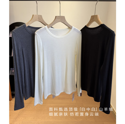 仿若置身云端含山羊绒轻盈薄款打底衫女t恤修身显瘦百搭圆领上衣