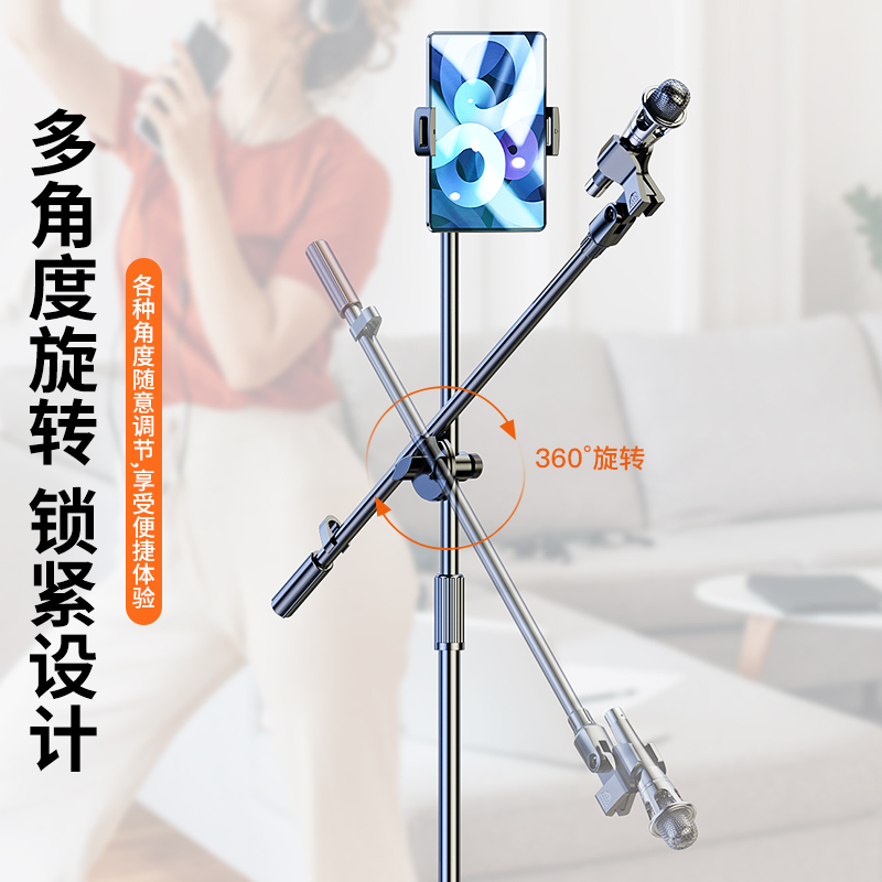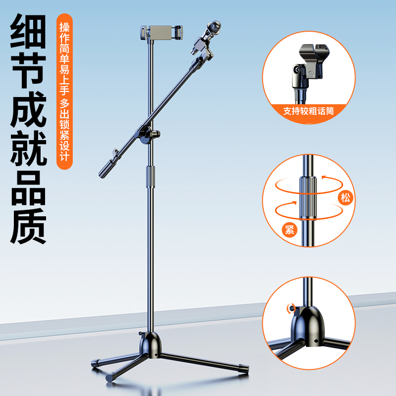 专业麦克风支架落地式直播话筒架一体KTV电容麦手机平板金属架子