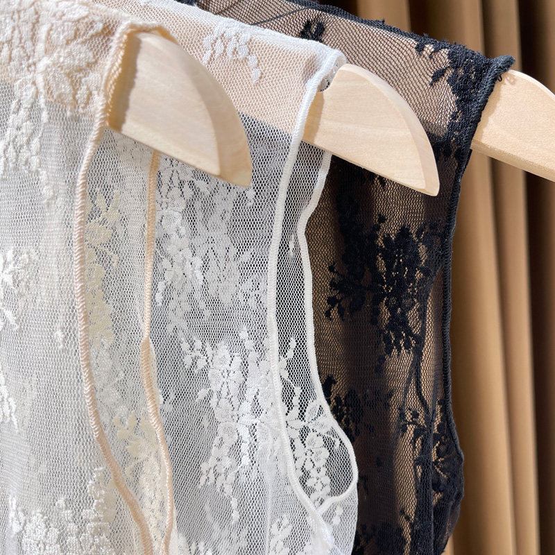 蕾丝假领子女百搭高档秋冬木耳边高领网纱打底衫无袖背心内搭纱衣