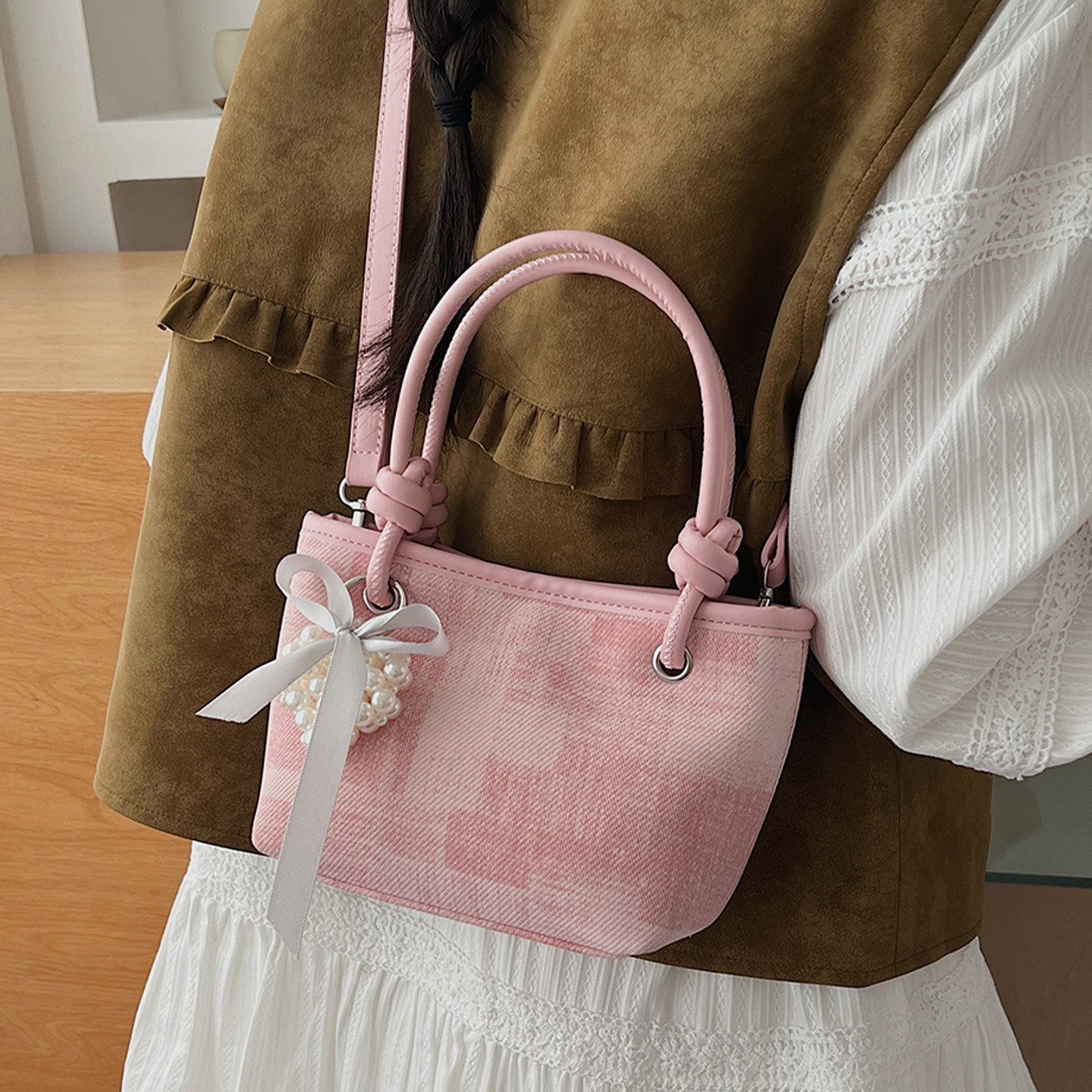高级感轻奢小众包包女款2026新款春超火上班小拎包单肩斜挎水桶包