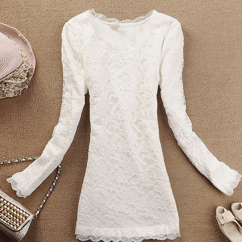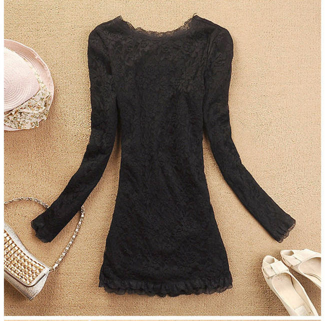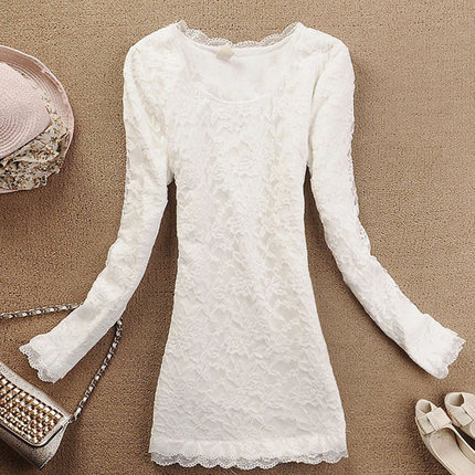 加绒加厚保暖显瘦蕾丝裙圆领T恤