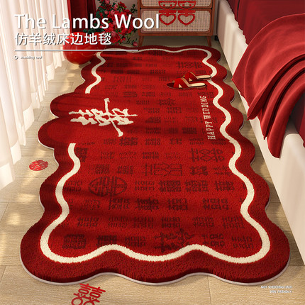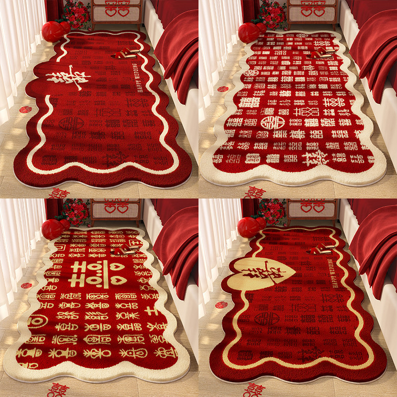 结婚婚房布置红色装饰喜庆床边地毯2026新款高级感卧室异形脚垫子
